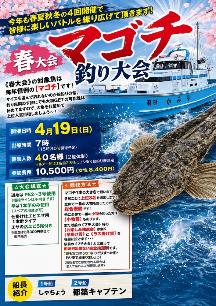 ※19日(日)は【マゴチ釣り大会】の為乗合は全て休船です!